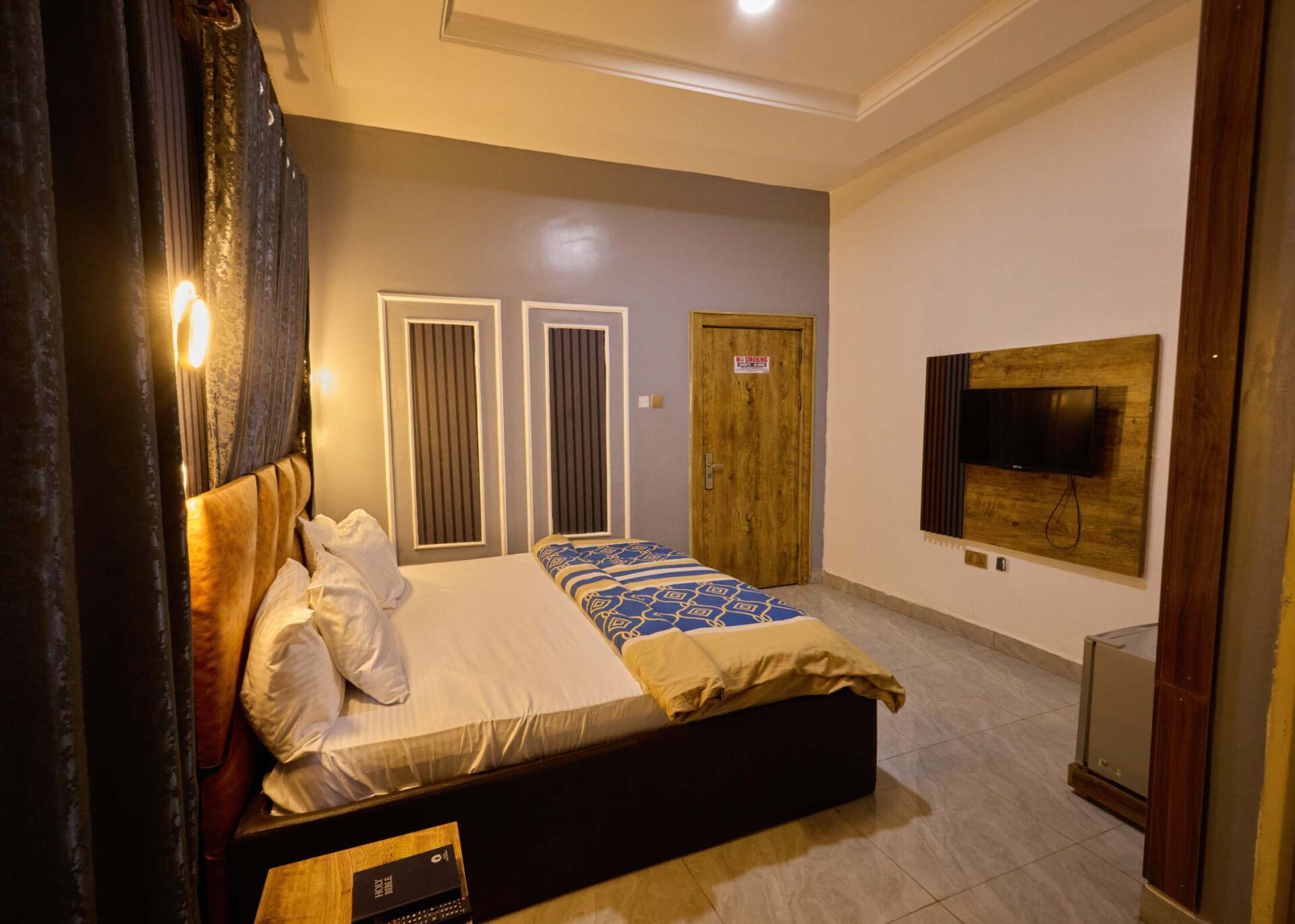 Our most luxurious option, the Executive Deluxe features a TV in both the room and private parlour, plus a fridge, AC, fan, hair dryer, wardrobe, and elegant seating. Perfect for VIPs or longer stays.